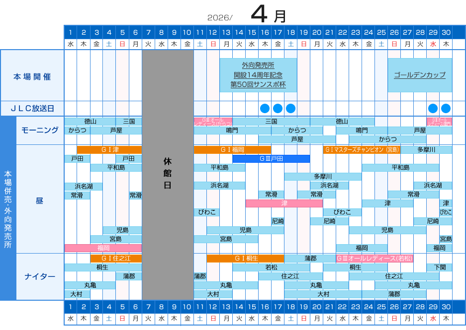 ホーム/開催日程/本場開催日程・外向発売所 BOAT RACE 365発売日程