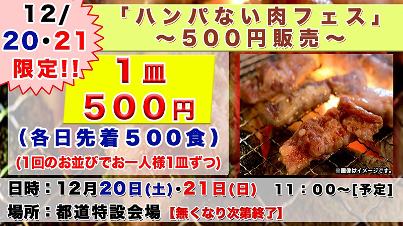 『ハンパない!肉フェス』 ~肉3種盛り合わせ500円販売~