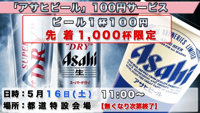 先着1,000杯限定!アサヒビールを100円のサービス価格で販売いたします!