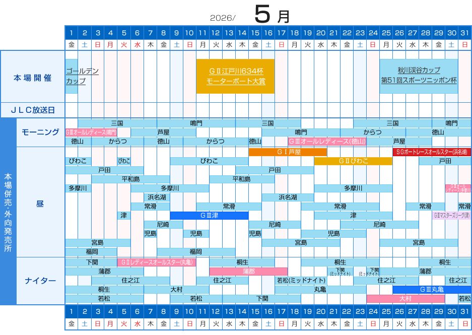 ホーム/開催日程/本場開催日程・外向発売所 BOAT RACE 365発売日程