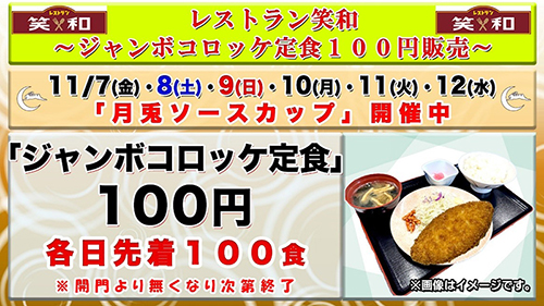 11月7日(金)より開催の「月兎ソースカップ」において下記の通りファンサービスを実施いたします!