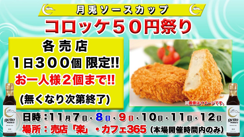 売店「楽」でのコロッケ販売は「月兎ソースカップ」開催期間中限定です!