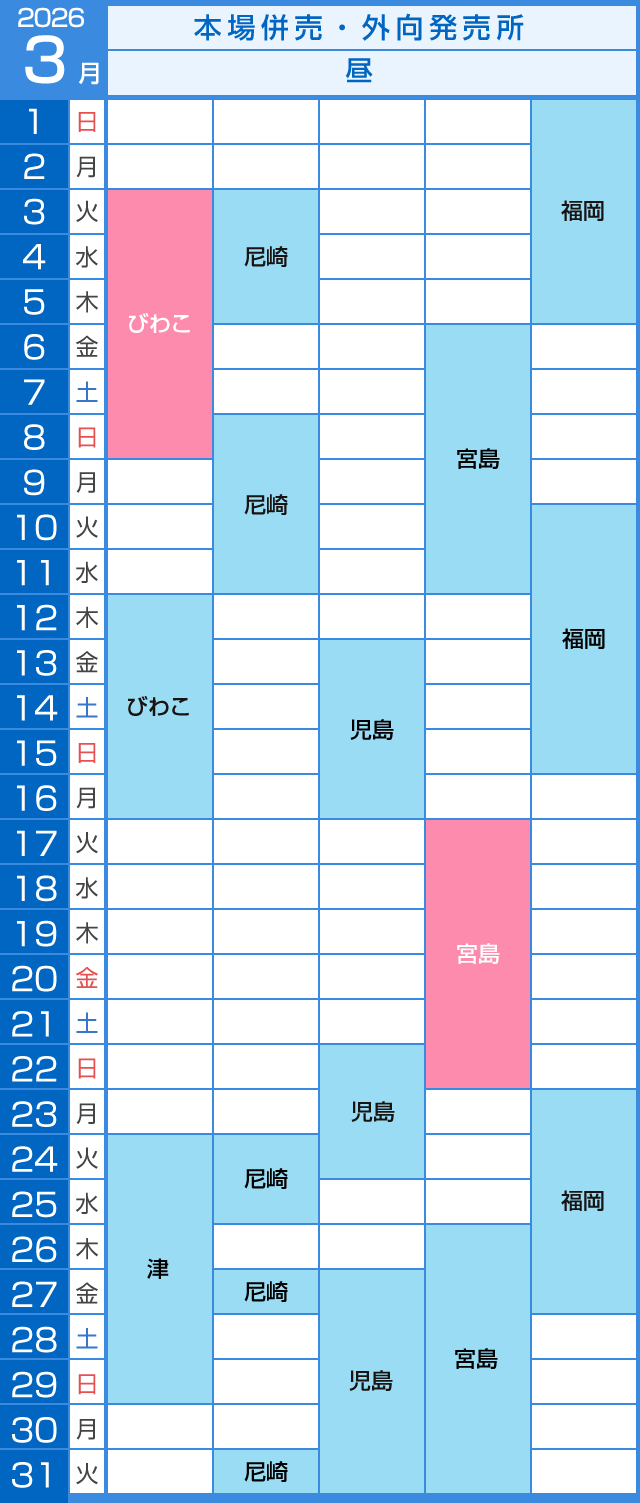 ※単独ナイター場外発売時は時間に変更のある場合がございますので、ご注意ください。