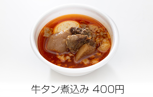 定番の「もつ煮込み」に飽きた方はピリ辛の「牛タン煮込み」がおススメ。